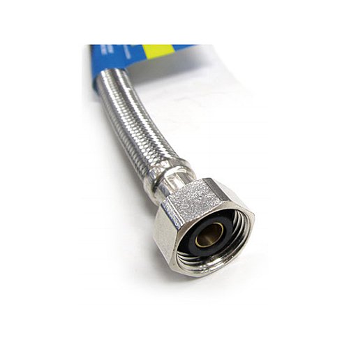 - Durable, flexible water connector with reinforced PVC inner hose, braided with stainless steel