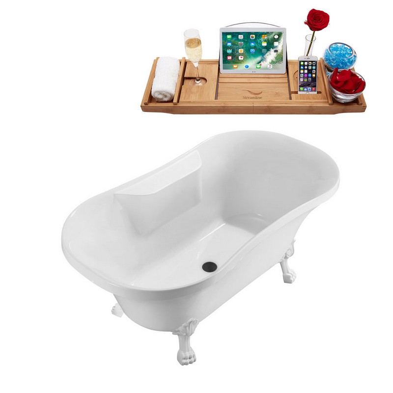 STREAMLINE N110WH-BGM 60 X 32 INCH SOAKING CLAWFOOT TUB IN WHITE AND TRAY WITH INTERNAL DRAIN, BRUSHED GUNMETAL,...