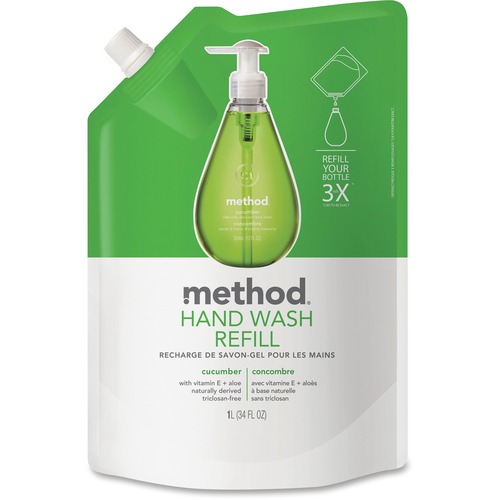 Method 00656CT Gel Hand Wash Refill, Cucumber, 34 Oz Pouch, 6/carton