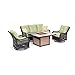 - Set includes one deep-seating sofa, two woven swivel gliders and a 40,000 BTU fire pit coffee table