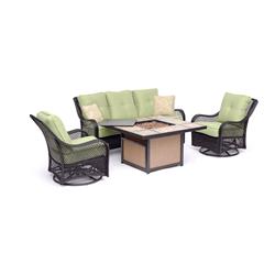 HANOVER ORL4PCTFPSW2-GRN ORLEANS 4-PIECE WOVEN LOUNGE SET WITH 2 WOVEN SWIVEL GLIDERS, SOFA, AND 40,000 BTU TILE TOP...