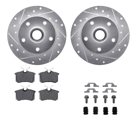7512-73021, Rotors-Drilled and Slotted-Silver w/ 5000 Advanced Brake Pads incl. Hardware, Zinc Coat