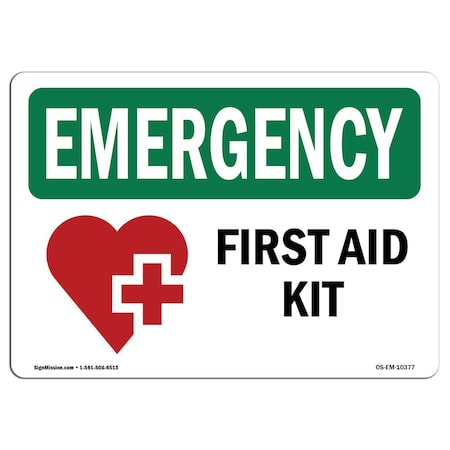 OSHA EMERGENCY Sign, First Aid Kit W/ Symbol, 24in X 18in Rigid Plastic