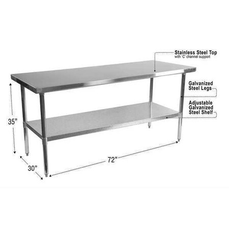 Reg Alera XS7230 Stainless Steel Table, 72 X 30 X 35, Silver
