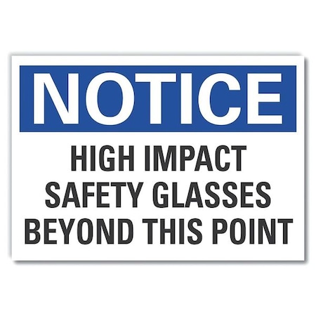 Notice Sign, Vertical Rectangle, Number of Printed Sides 1, English, Sign Format Traditional OSHA, Sign Legend High Impact Safety Glasses Beyond This Point, Sign Legend Background Color White, Sign Legend Style Text