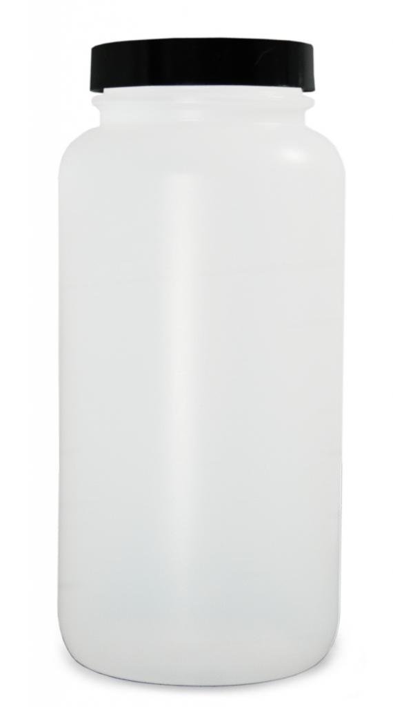 - 16oz (500ml) Natural HDPE Wide Mouth Round with 53-400 Black Phenolic Solid PE Lined Cap attached, Vacuum & Ionized