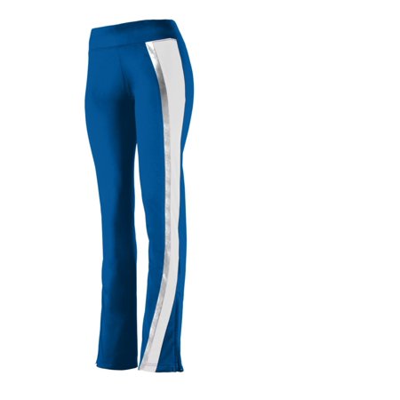 Heavyweight 100% polyester matte brushed tricot * Girls' fit * Low rise * Slim fit through thigh opens up to a moderate flare at the knee * Wide, covered elastic waistband that fits flat to body * Asymmetrical curved insert on left leg * Metallic silver insert brings shine to the field * 9-inch zipper on outside lower leg * Double-needle hemmed bottom * Machine washable * Individually polybagged
