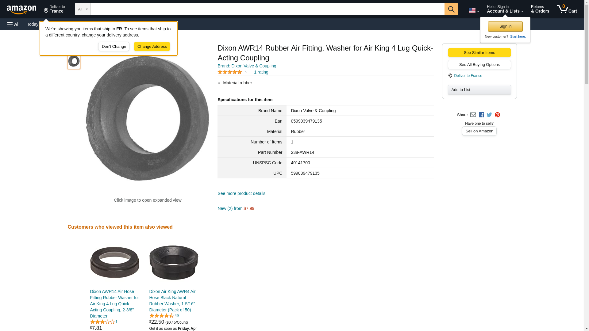 Dixon AWR14 Rubber Air Fitting, Washer for Air King 4 Lug Quick-Acting Coupling