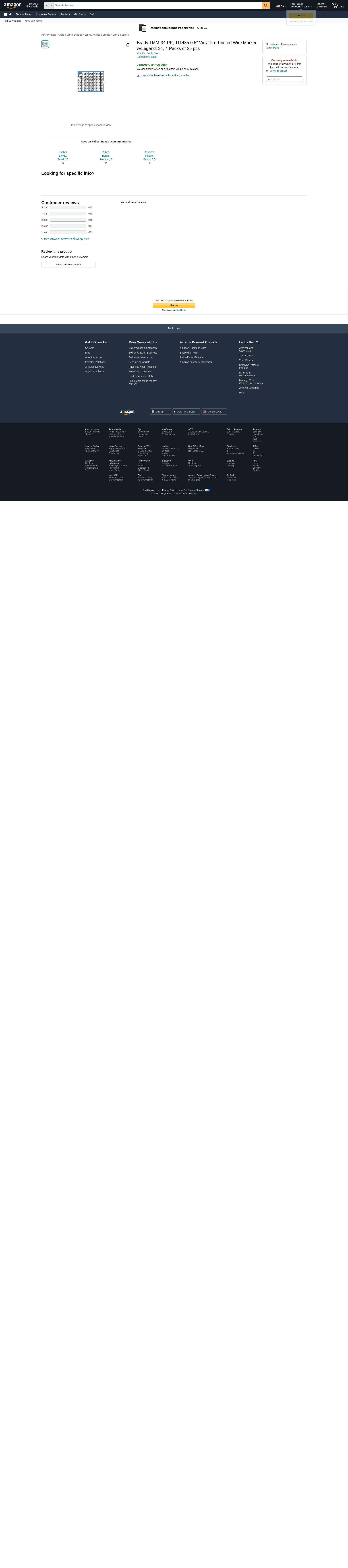 Brady TMM-34-PK, 111435 0.5" Vinyl Pre-Printed Wire Marker w/Legend: 34, 4 Packs of 25 pcs