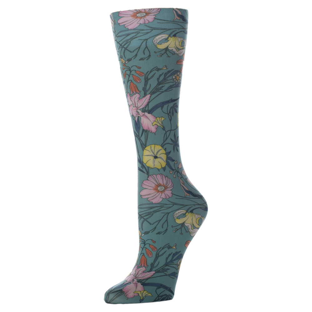 Celeste Stein Celeste-Stein-187-2222 18 in. Womens Trouser Sock with Lilies Pattern - Turquoise