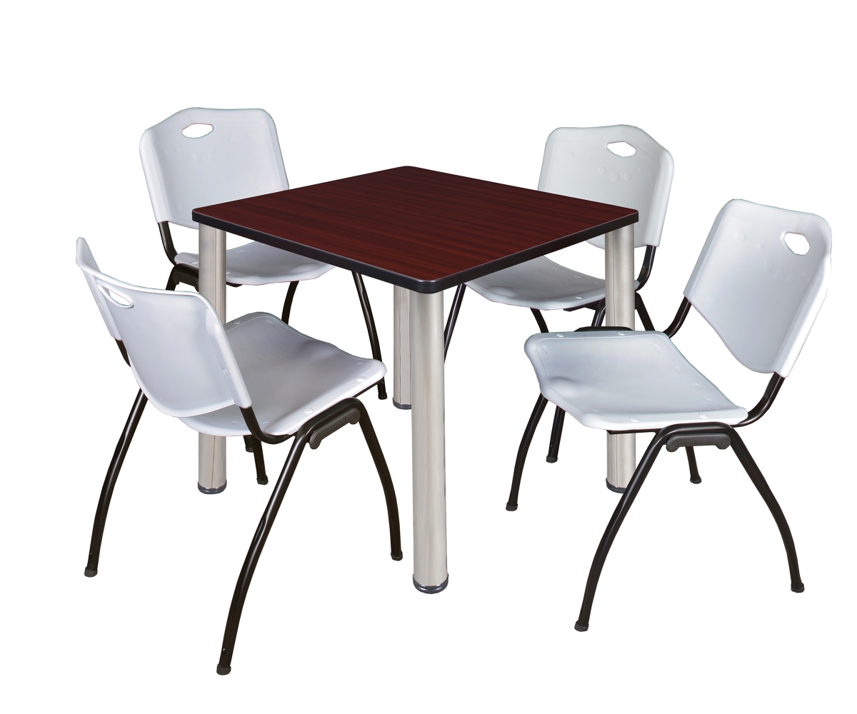 Regency TB3030MHBPCM47GY 30 in. Kee Square Breakroom Table, Mahogany & Chrome & 4 in. M Stack Chairs - Grey