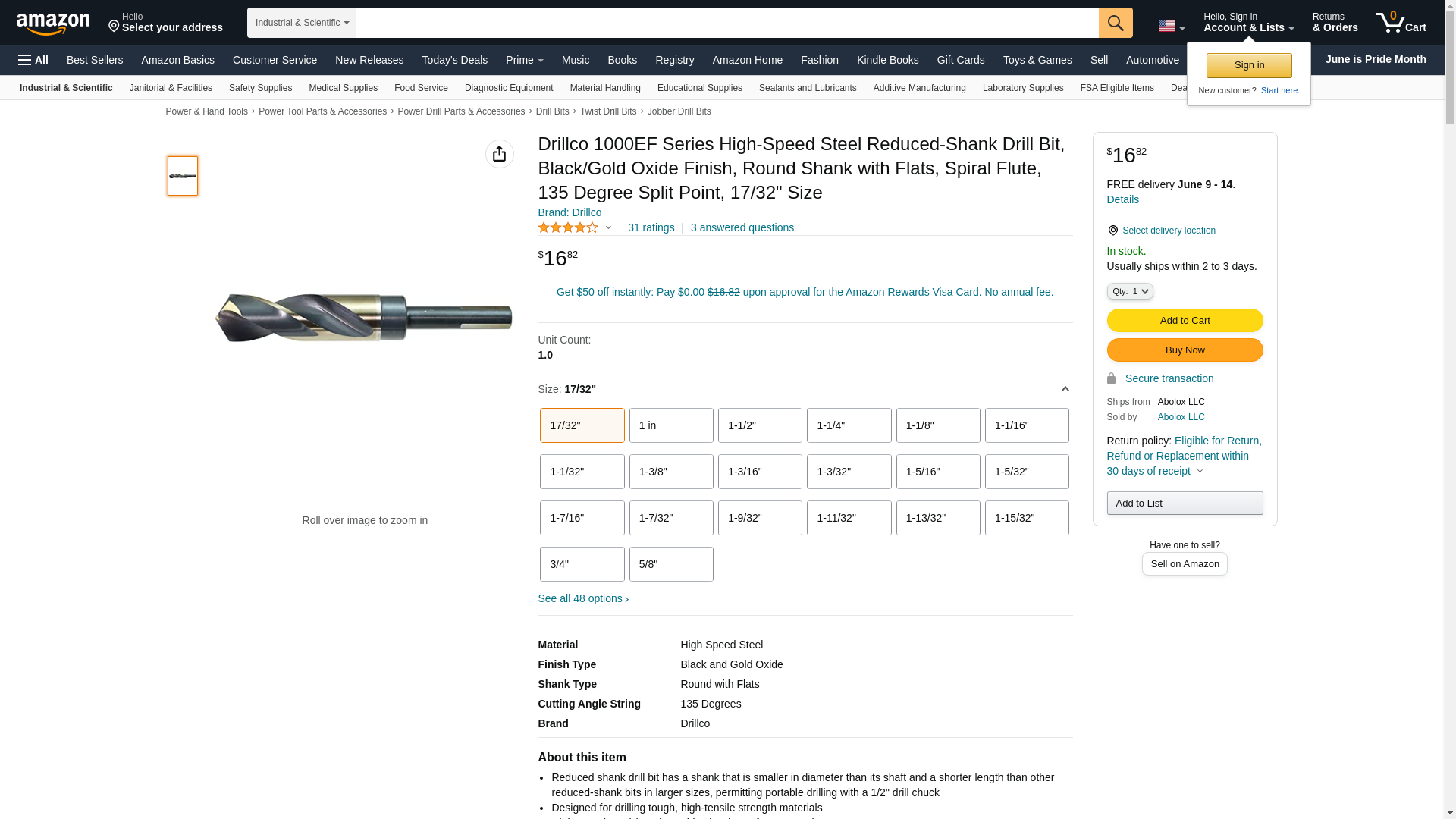 DRILLCO 1000EF134 17/32 1/2" Shank S&D Drills High Speed Steel Black & Gold 135 degree Point - MROSupply.com