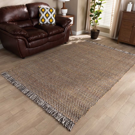 Nurten Modern and Contemporary Orange and Grey Handwoven Hemp Blend Area Rug