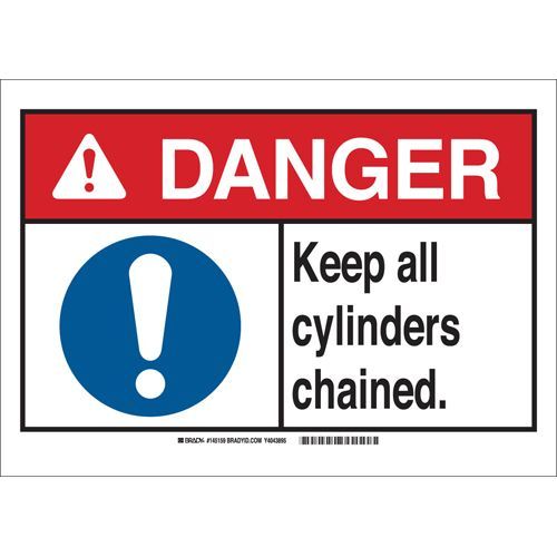 Brady 145158 DANGER Keep All Cylinders Chained. Sign - Self-sticking Polyester - Black/Blue/Red on White - 7 x 10