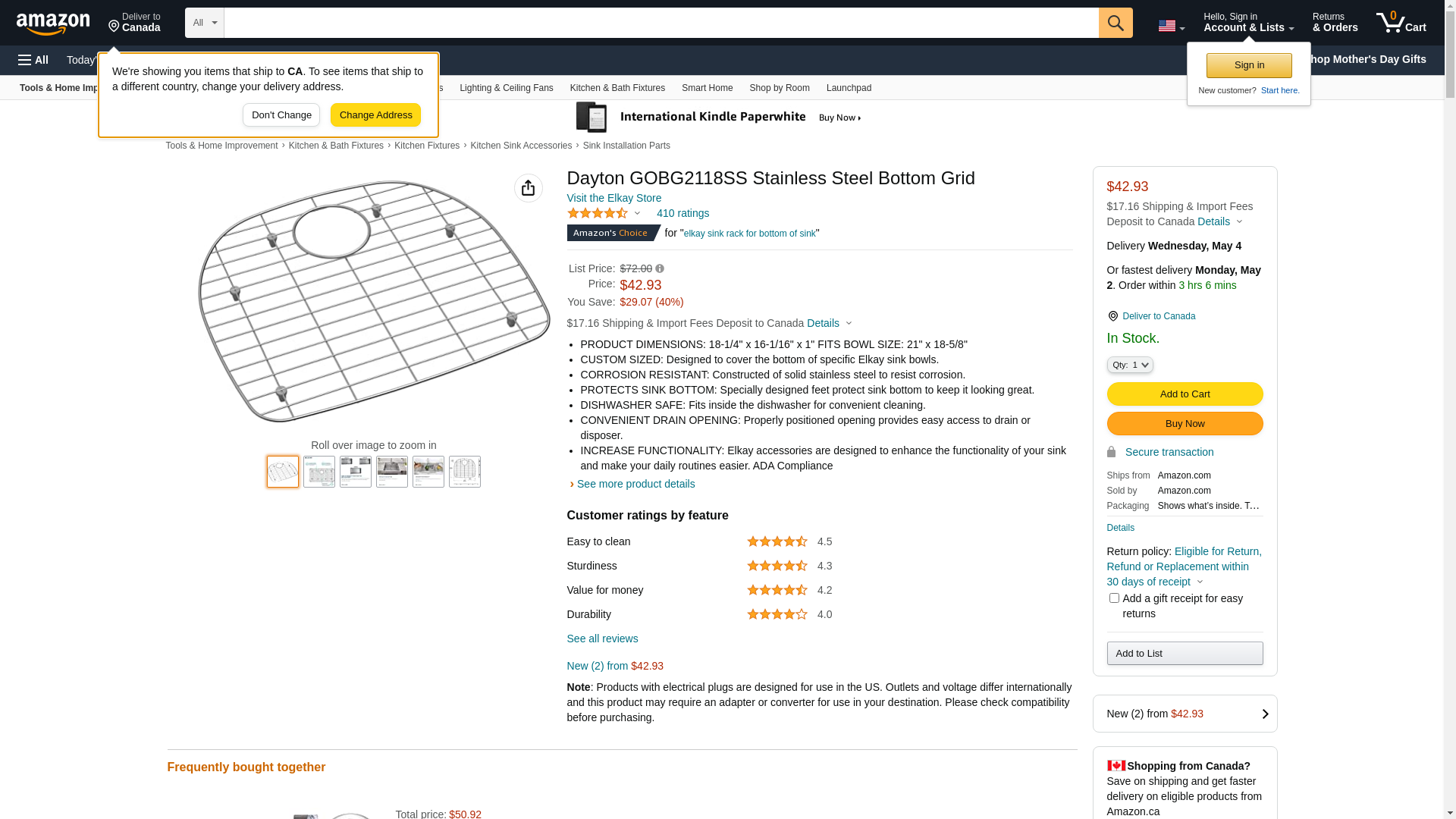 | ELKAY-GOBG2118SS | 1 | 1 | 1 @ $41.40 | ||