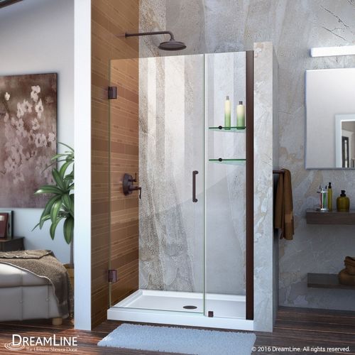 DreamLine Unidoor 53-54 in. W x 72 in. H Frameless Hinged Shower Door with Shelves in Oil Rubbed Bronze