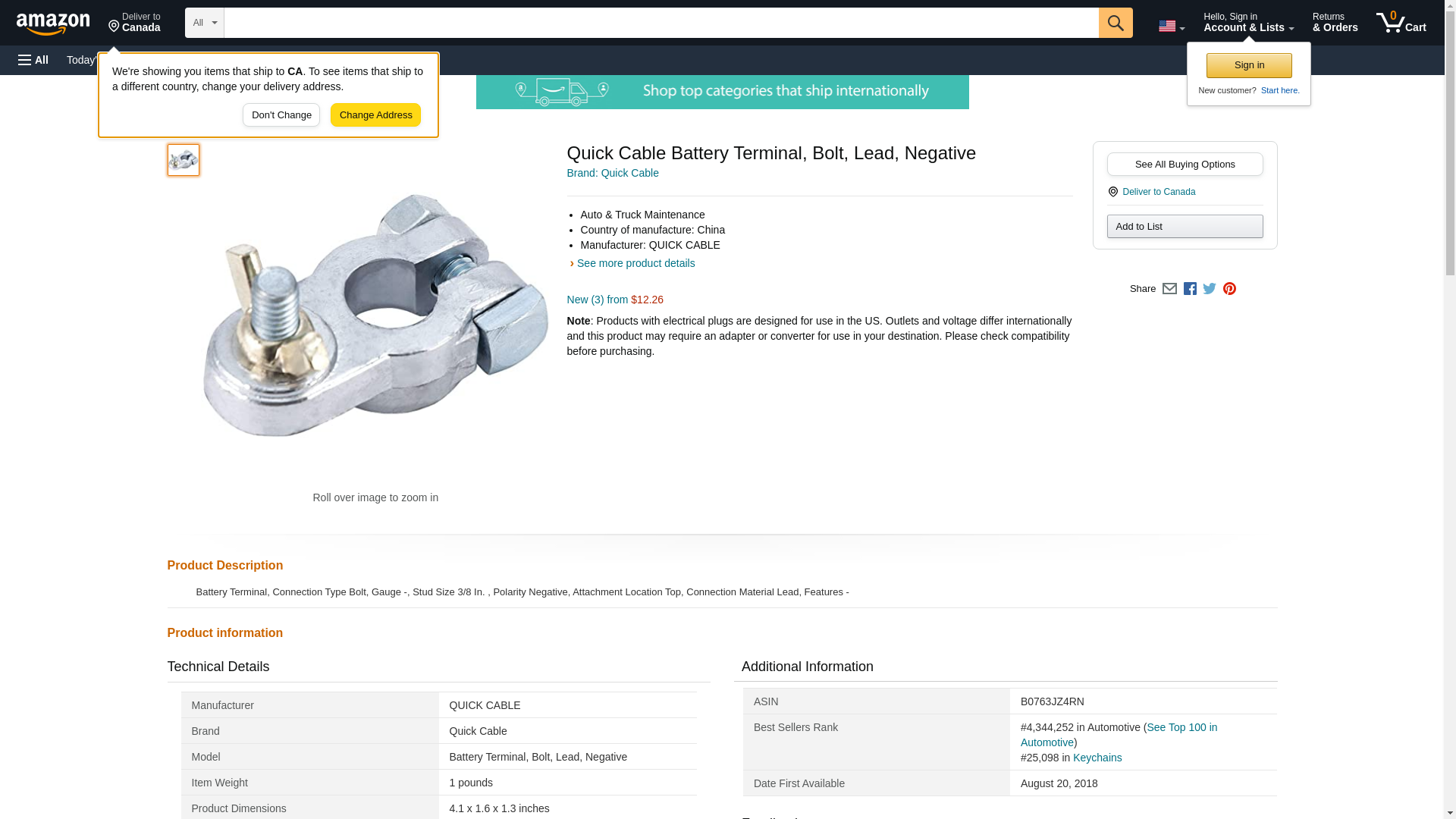 Quick Cable Battery Terminal, Bolt, Lead, Negative