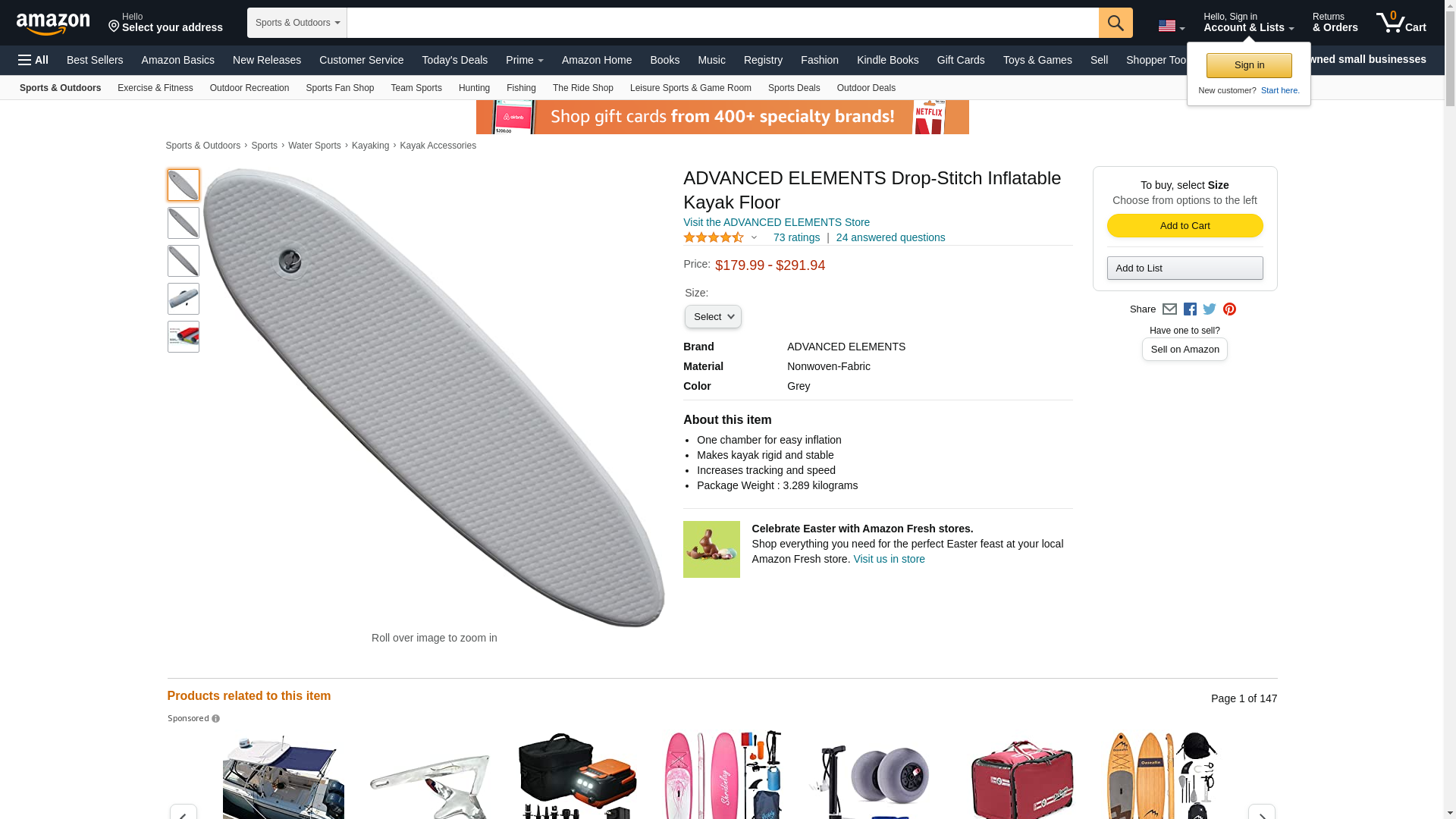 ADVANCED ELEMENTS RigidForm Dropstich Floor for AdvanceFrame & Sport Kayak, Grey, (AE-DS1012)