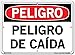 VESTIL DANGER SIGN SI-D-63-C-PS-040-S POLYSTYRENE .040" overall size 14.5"W x 10.5"H Fall Hazard PELIGRO DE CAÍDA