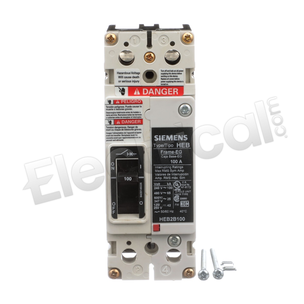 Mfr Brand Name: SIEMENS / Catalog No.: HEB2B100B / Product Name: SIEMENS HEB2B100B N 100A 480V 2P NEW / Amps: 100 / Volts: 480 / Poles: 2 / AIC: 65
