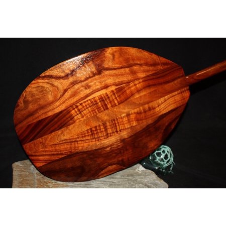 <div class="productDescription_zoovy:prod_desc"> <p>Outrigger canoe paddle: Here is an authentic Hawaiian Koa Outrigger canoe paddle made in Hawaii, the Koa is from the Big Island (Paddle cost is dependent on the amount of color, curl, and character of the wood). The paddle measures 70" tall and the blade measures 21 inches X 15 inches and features a straight shaft. These functional handmade Hawaiian Canoe Paddles are designed to be displayed in your home or office. Each paddle is unique with respect to color, curl, & character of the wood.</p> These paddles are made by our Master Paddle Maker and each one is a true unique treasure from Hawaii. <p>WHAT YOU SEE IS WHAT YOU GET! WE GUARANTEE IT!</p> </div>