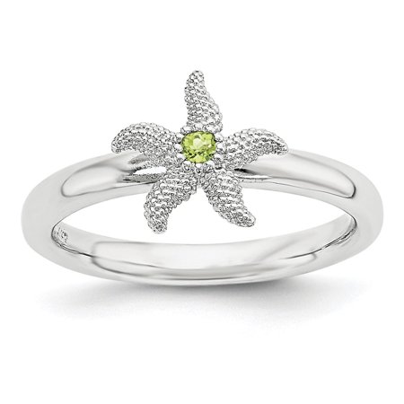 Womens 925 Sterling Silver Polished Peridot Starfish Stackable Ring Size 9