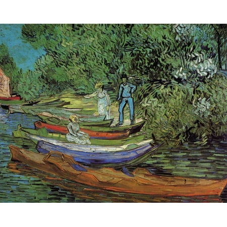 Vincent Van Gogh Stretched Canvas Art - Bank Of Oise At Auvers - Large 22 x 28 inch Wall Art Decor Size.