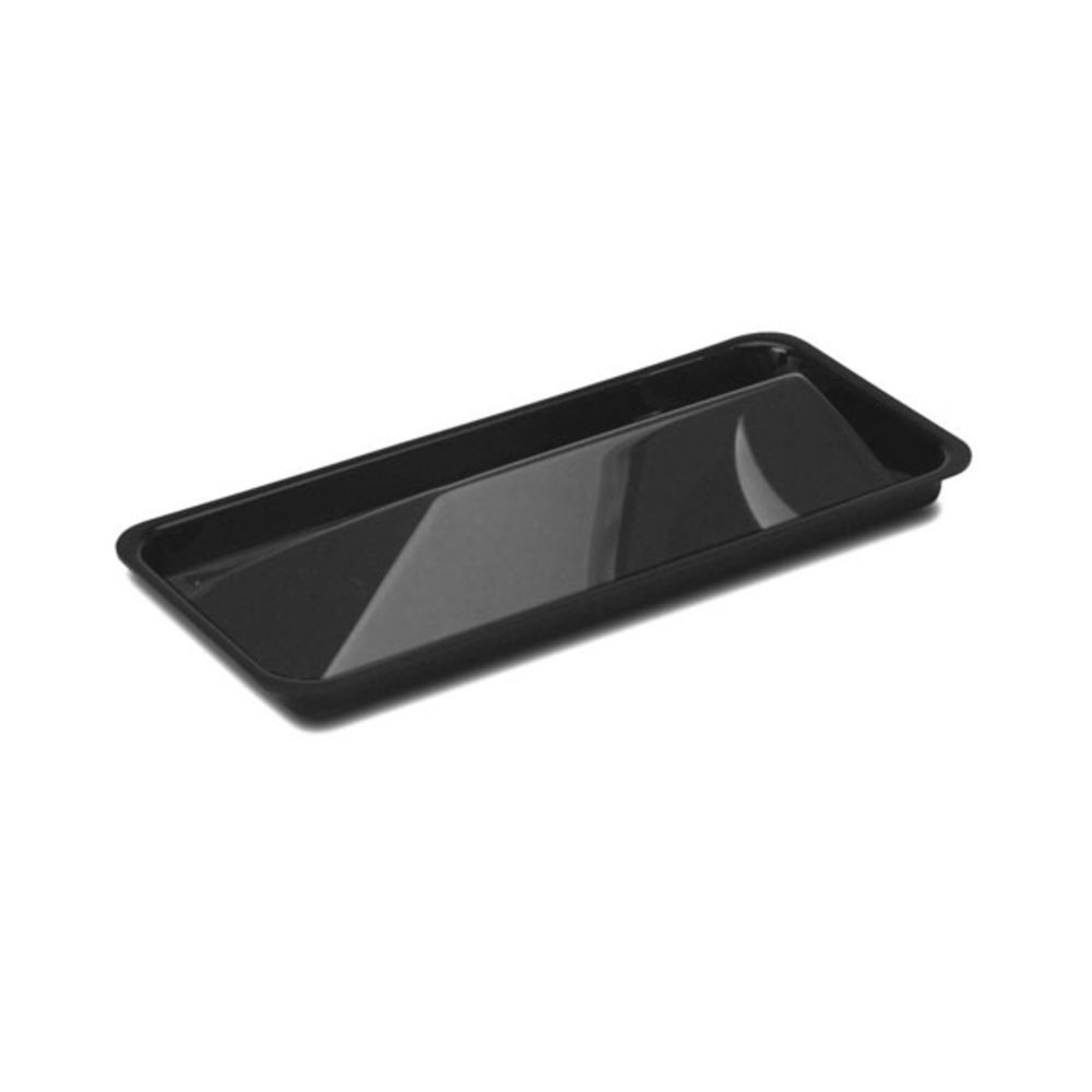Delfin 15" x 6.5" x 1" Black Market Dummy TrayThis Delfin Market Dummy Tray makes a great addition to any deli case or catering event. It comes in a glossy black color, and features highly break-resistant acrylic construction. Acrylic construction Highly break-resistant Black color, glossy finish Length: 15" Width: 6.5" Height: 1" Model #: TRC-156D-10 118720