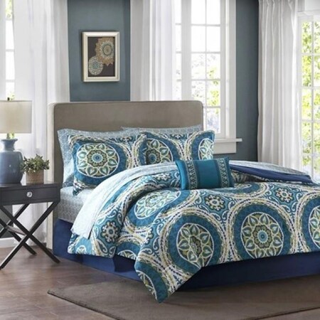 Madison Park Essentials Serenity King Complete Comforter & Cotton Sheet Set in Blue - Olliix MPE10-058