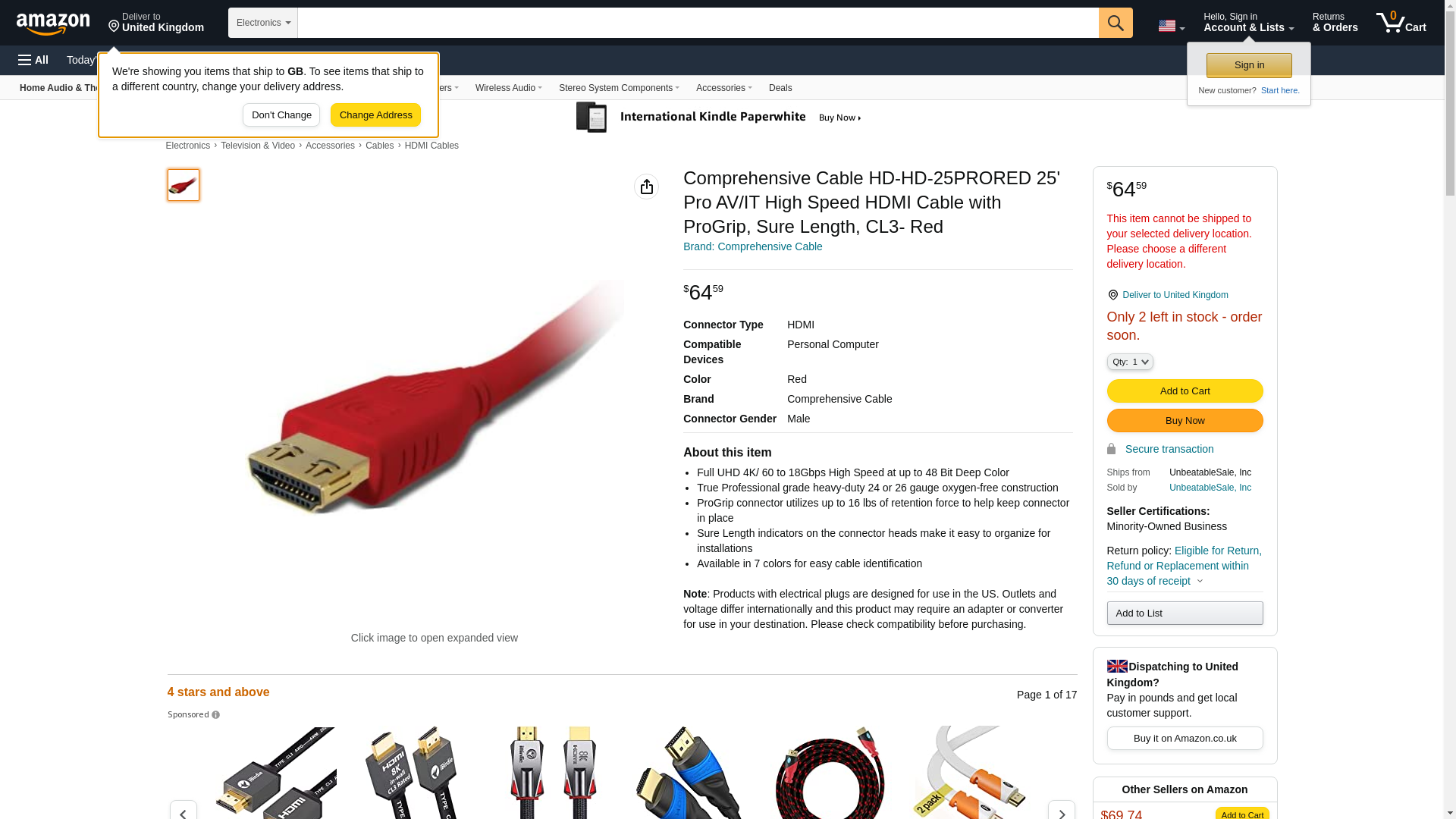 ![]() bhphotovideo.com | COHD25FTPRED | 1 | -2 | 1 | 1 @ $57.59 |