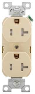 EATON TRBR20V-BXSP Arrow Hart Tamper Resistant Duplex Receptacle, 125 V, 20 A, 2 Pole, 3 Wire, Ivory