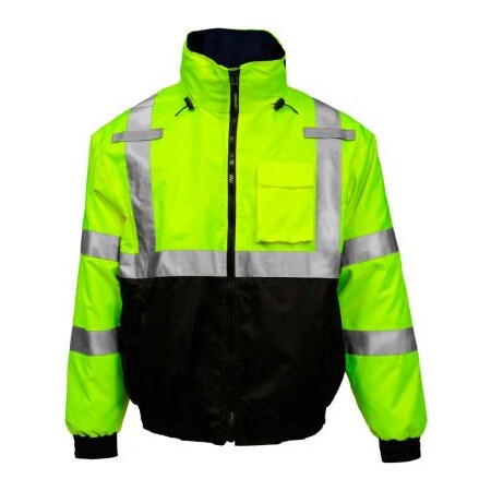 IndustrialSafety.com | Tingley J26172.SM BOMBER 3.1 Class 3 Jacket, Elastic Waist and Cuffs, Roll-A-Way Hood in Collar, Removable Black Quilted Liner with Zipper, Lime/Black, Size: Small