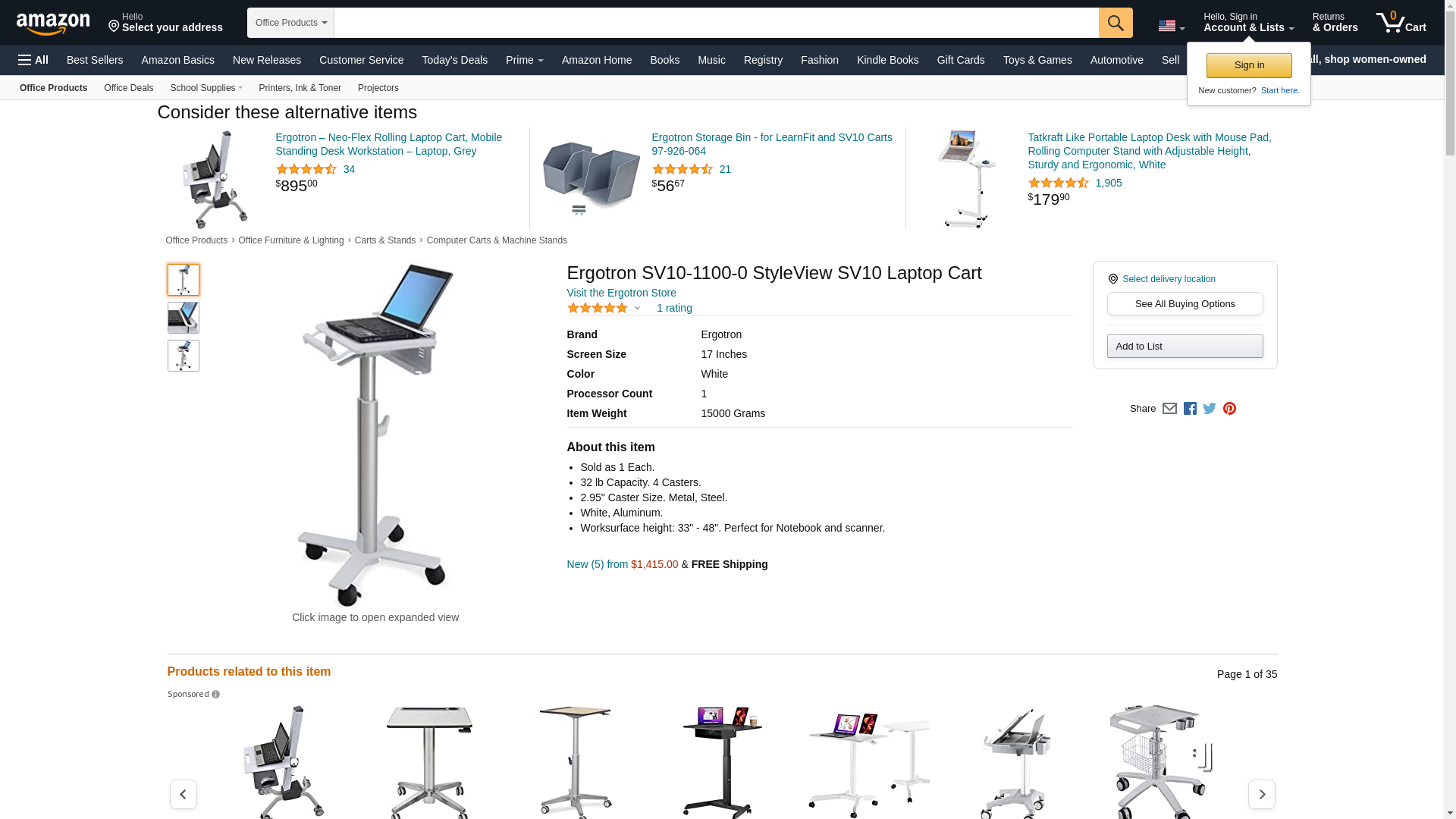 | Feature | StyleView Laptop Cart, SV10 |