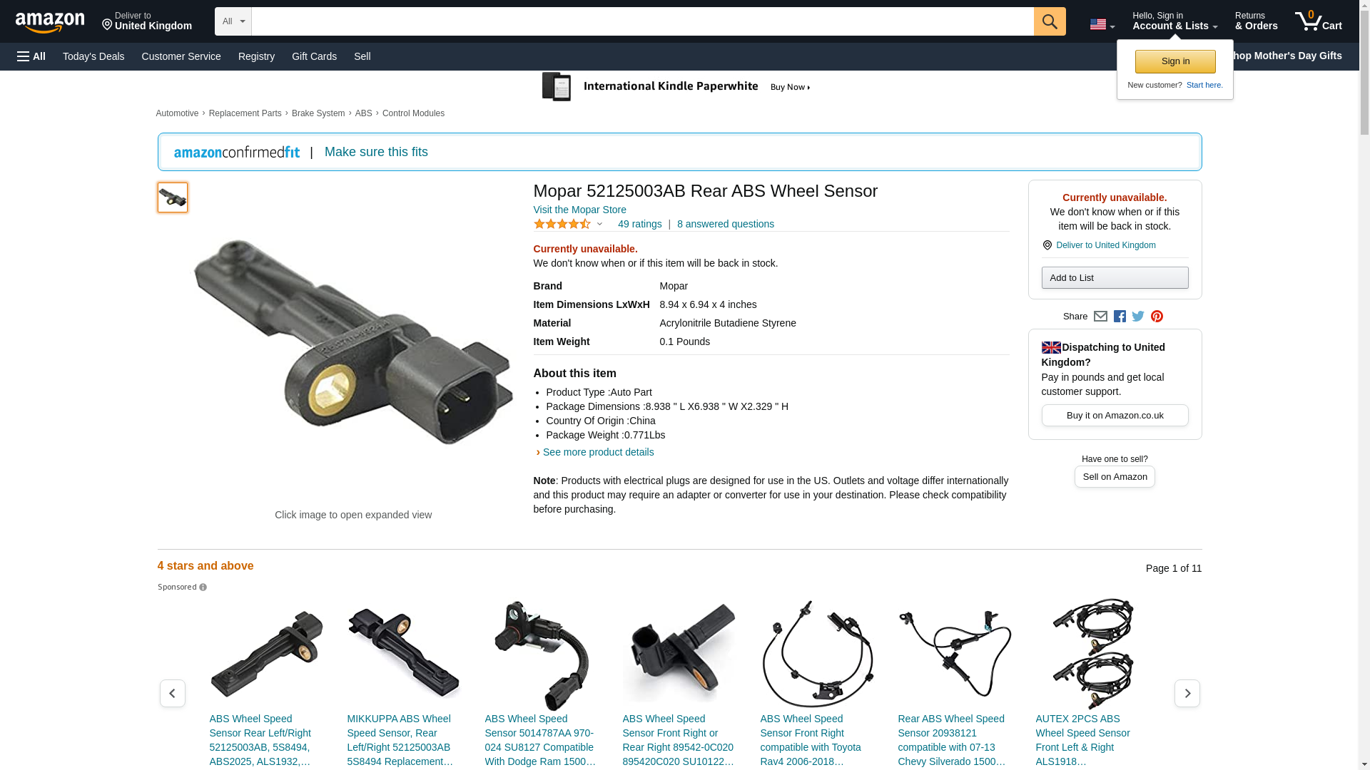 Mopar 52125003AB Rear ABS Wheel Sensor