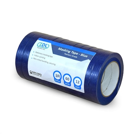 IDL Packaging 3/4-inch x 60-Yard Blue Painter's Tape, Natural Rubber (Pack of 48 Rolls) – Sharp Lines and Surfaces Protection – Easy-to-Remove Tape Leaving no Residue – Perfect for Painting Works
