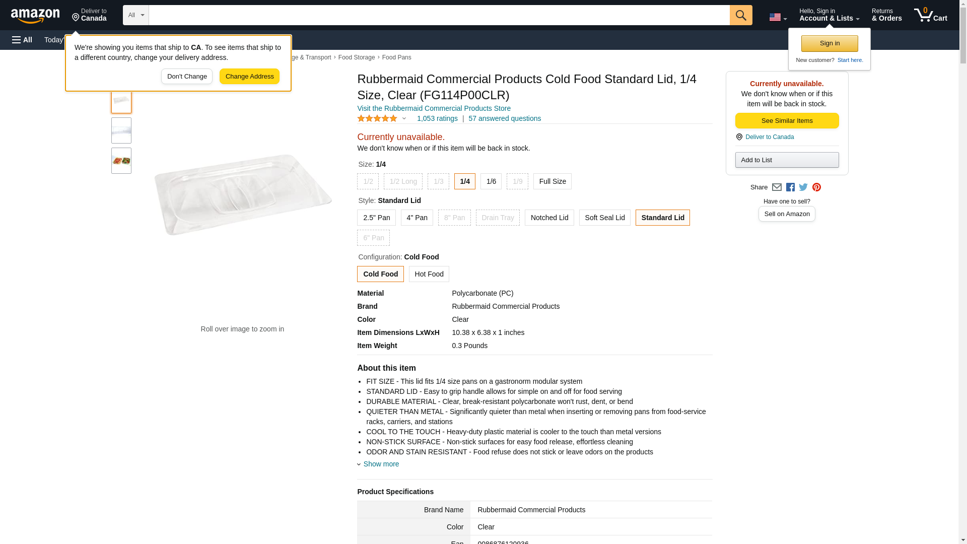 Rubbermaid FG114P00CLR Food Pan Cover Cover for Cold food pan 1/4 size - Case of