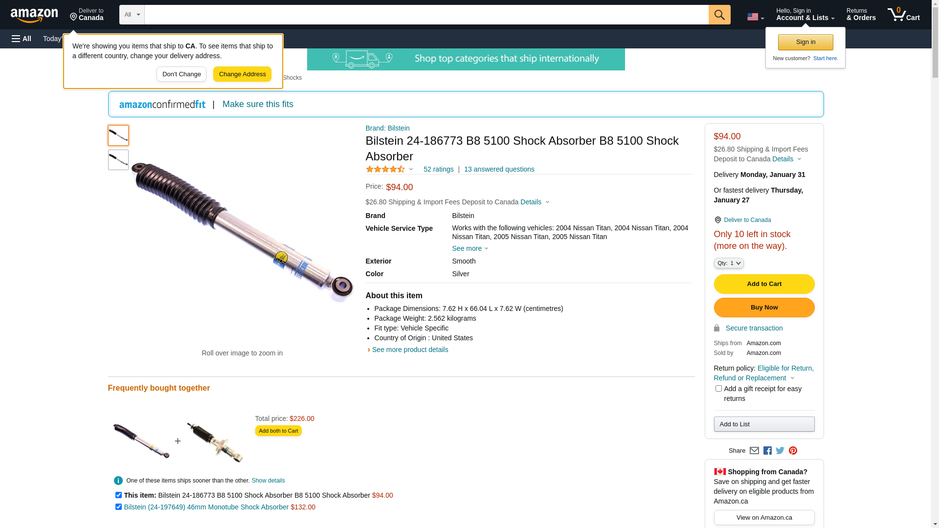 ![]() automotivestuff.com | BILSTEIN-24-186773 | 1 | -2 | 1 | 1 @ $111.60 |