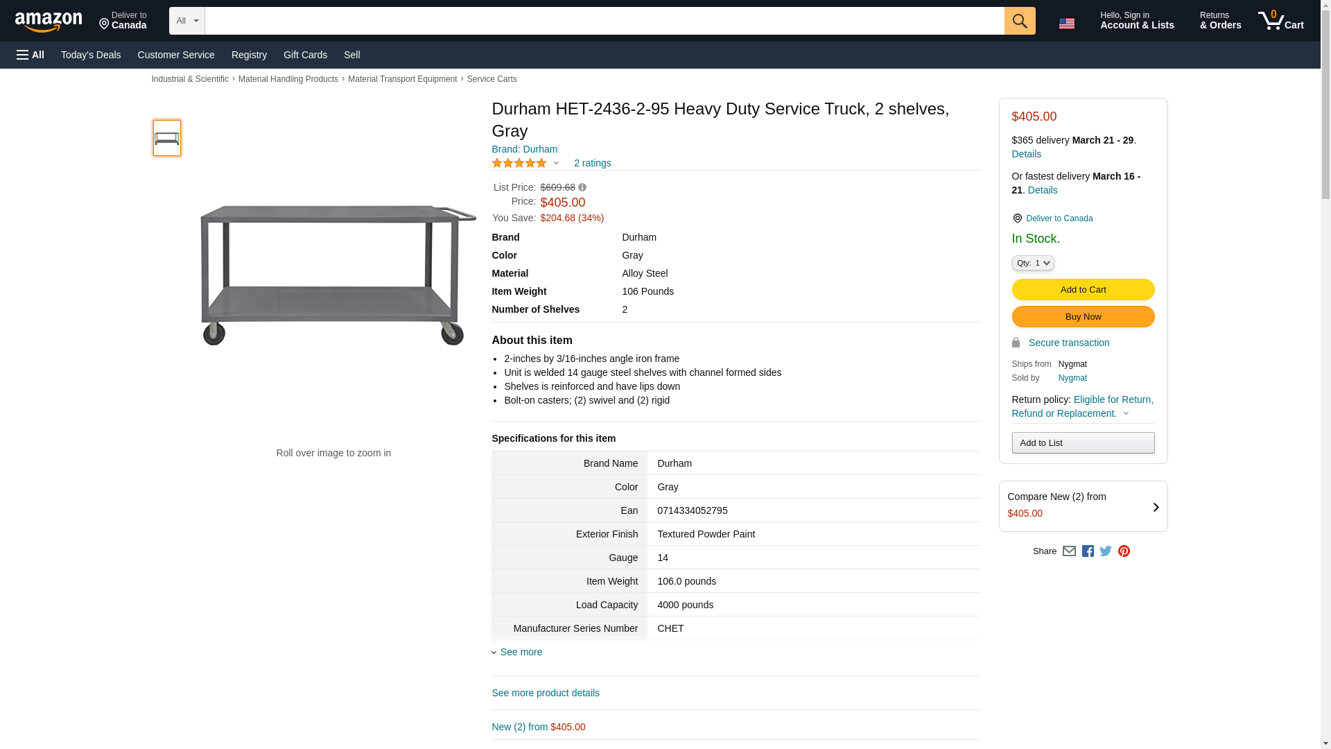 Durham HET-2436-2-95 Heavy Duty Service Truck, 2 Shelves, Gray
