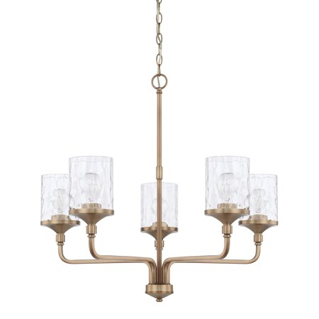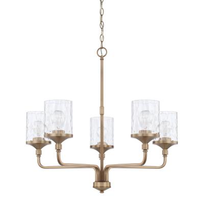 HomePlace Lighting 428851AD-451 Colton Urban/Industrial Clear Water Glass Chandelier, 5-Light 500 Total Watts, 27" H x 28" W, Aged Brass