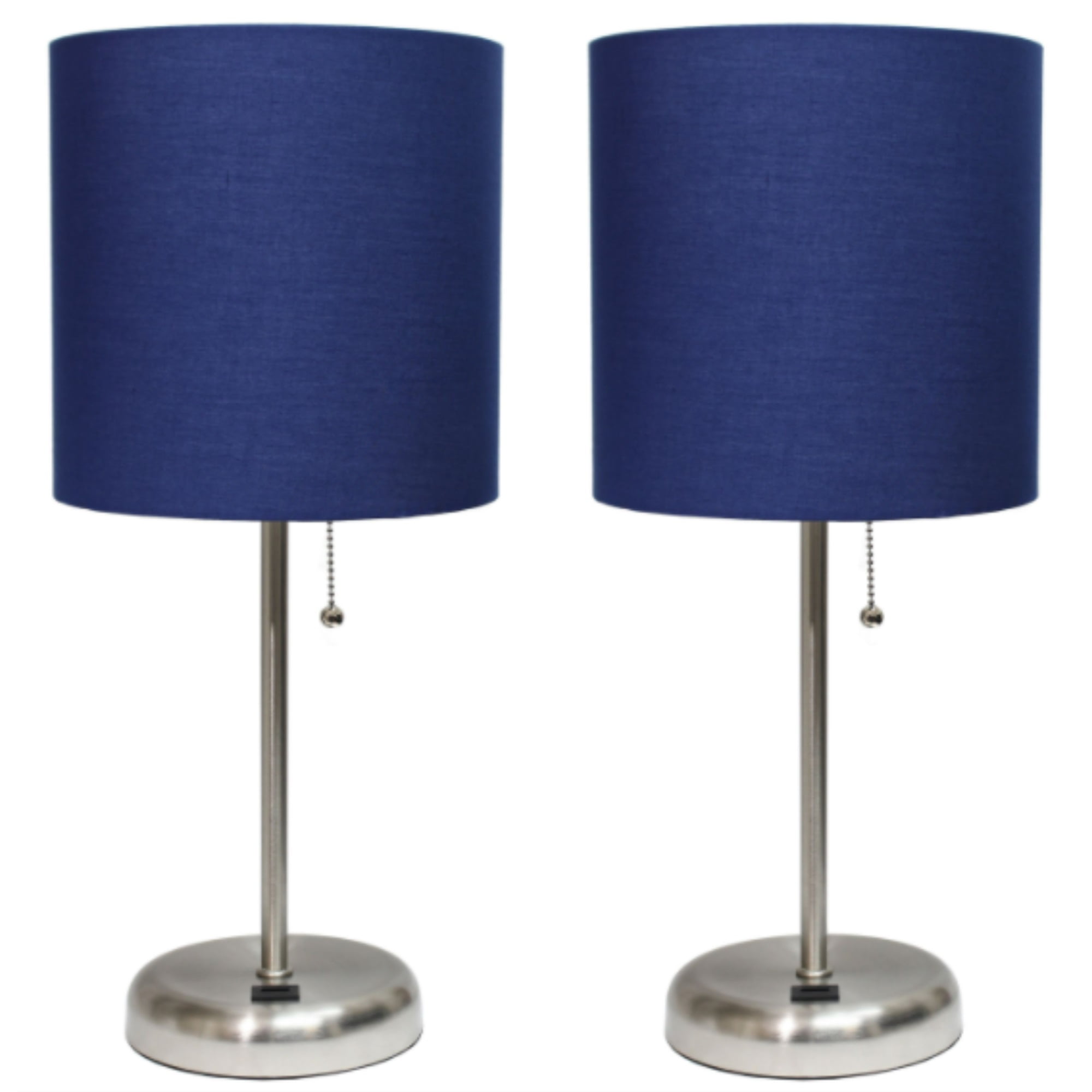 Limelights LC2002-NAV-2PK Stick USB Charging Port and Fabric Shade 2 Pack Lamp Set, Brushed Steel/Navy