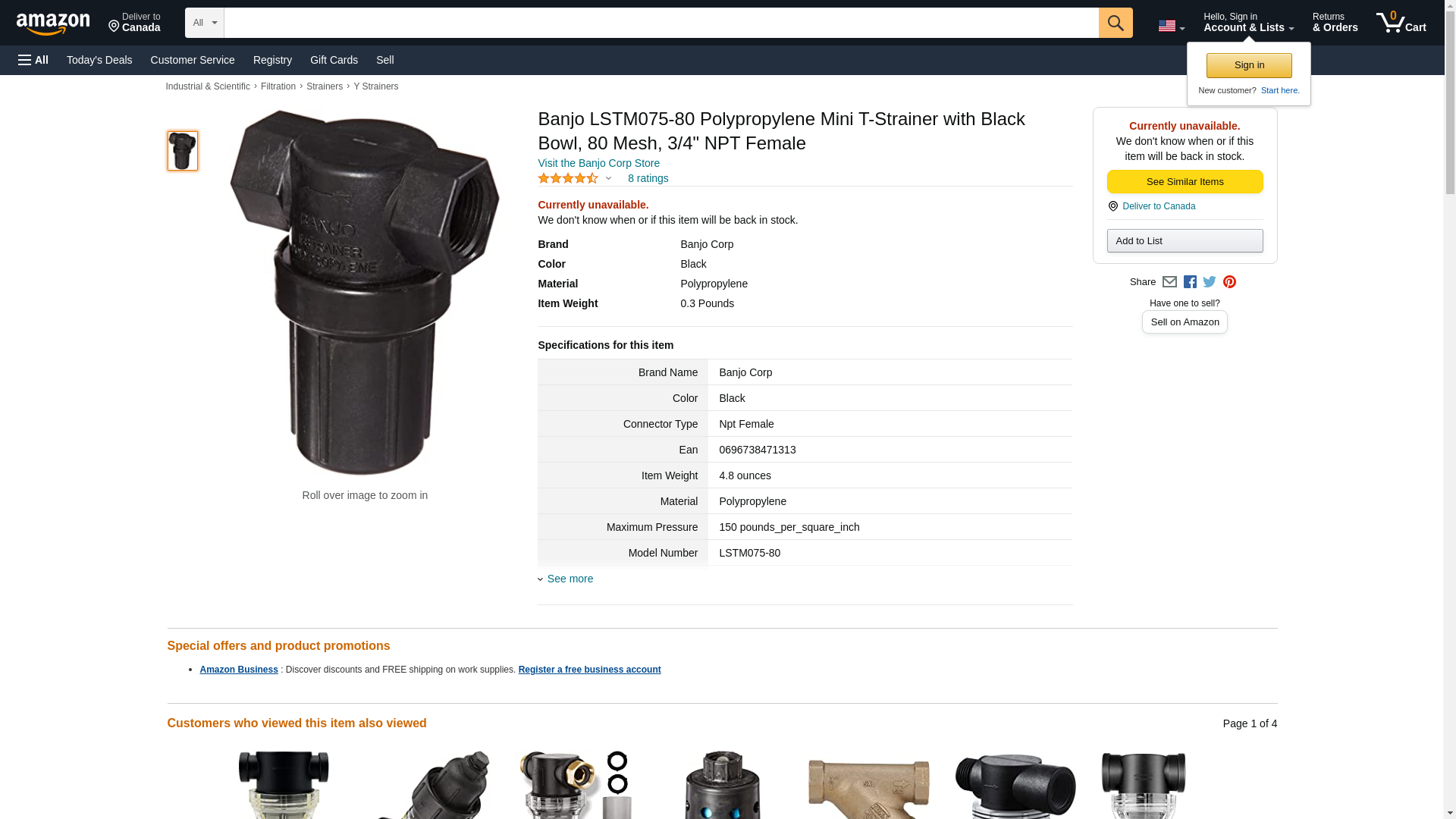 Banjo Inline Strainer,4 3-16" H,177 micron LSTM075-80 ZO-G1136511 - SIM Supply