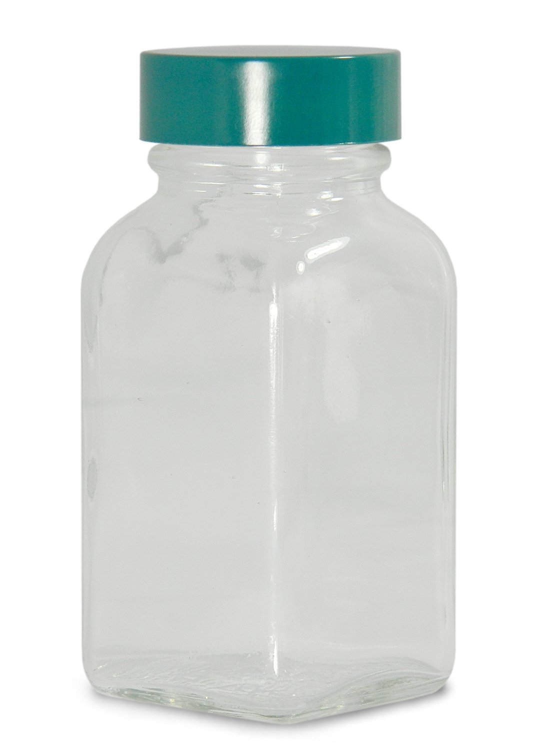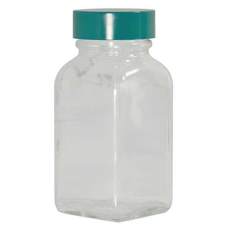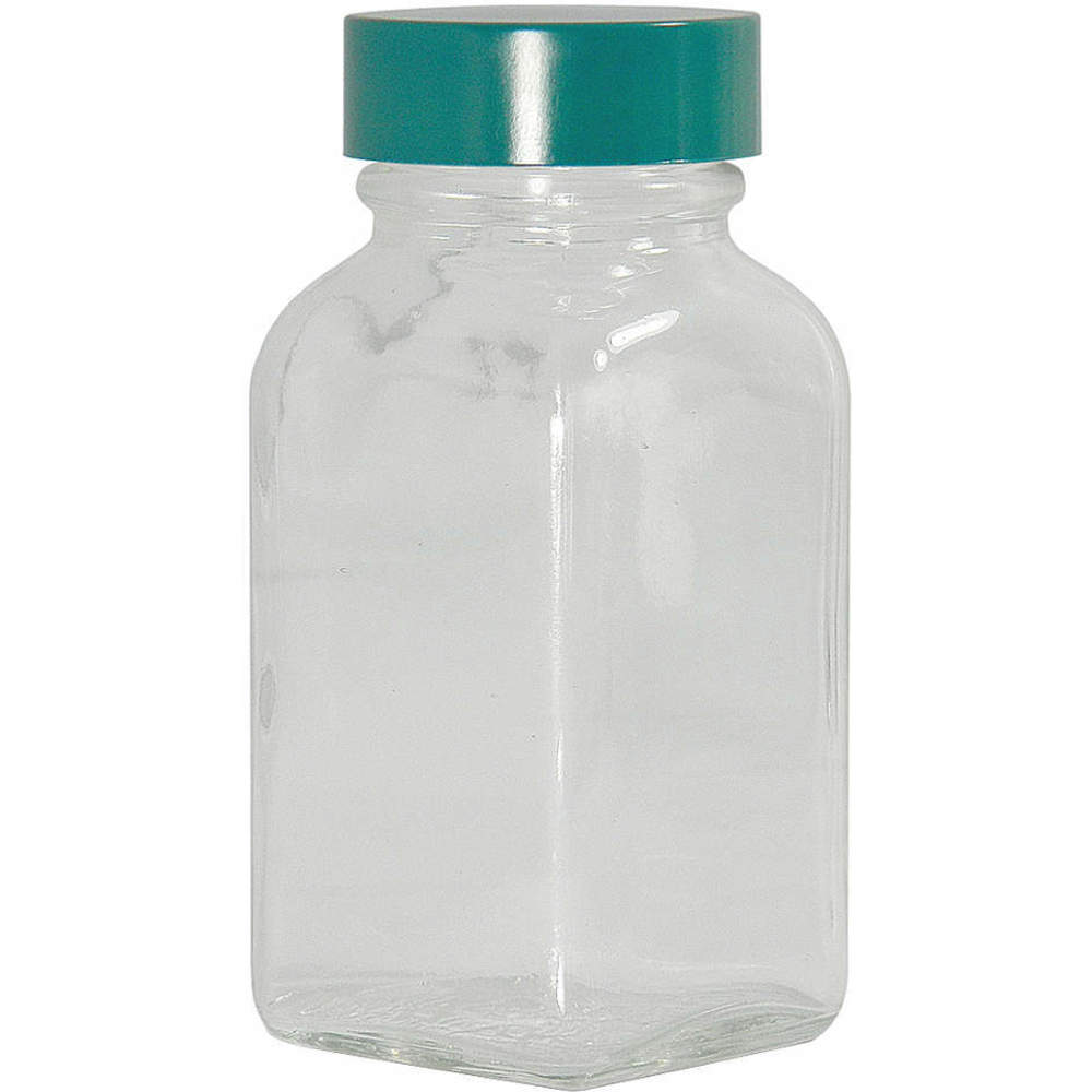 Qorpak GLC-01275 Clear Glass Square Tablet Bottle with 33-400 Green Thermoset F217 and PTFE Lined Cap, 1oz Capacity, 34mm OD x 60mm Height (Case of 288)