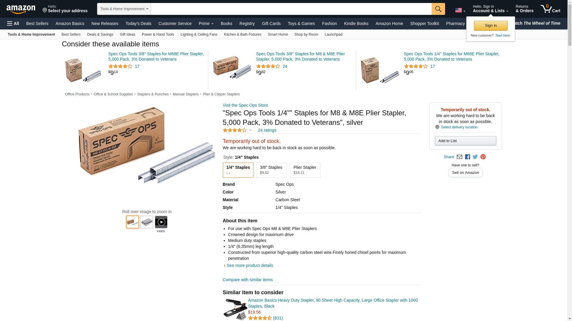 "Spec Ops Tools 1/4"" Staples for M8 & M8E Plier Stapler, 5,000 Pack, 3% Donated to Veterans", Silver