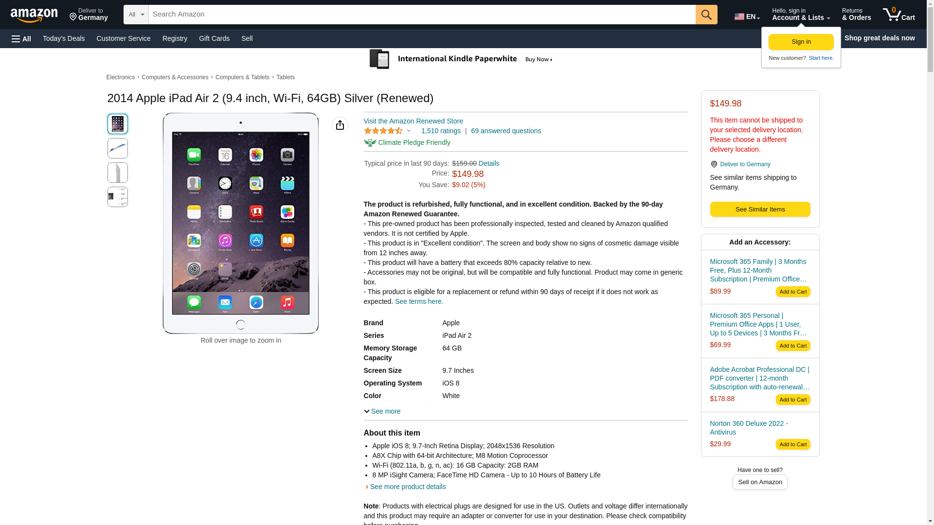 Apple iPad Air 2 MGKM2LL/A (64GB, Wi-Fi, Silver) NEWEST VERSION (Renewed)