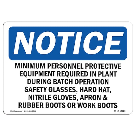 OSHA Notice Sign, Minimum Personal Protective Equipment Required, 14in X 10in Decal