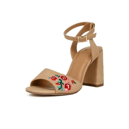 <ul> <li>Fall in love with these fashion forward floral embroidered detail ankle strap sandal heels. Featuring all over faux leather, an embroidered floral design along the main strap, open peep toe, adjustable ankle straps and solid block heels. These heels are easy to walk in for the perfect everyday heel. Chic & Trendy. Get all the latest fashion trends when you shop today. While supplies last!</li> <li>Measurements are as followed: Size 5.5, 6, 6. 5, 7, 7.5, 8, 8.5, 9,10| Heel 3.5"</li> <li>Color options: Beige</li> <li>Material Made of Man Made Materials, Made in China</li> <li>Stay stylish and trendy when you shop at Xehar today. While supplies last!</li> </ul>