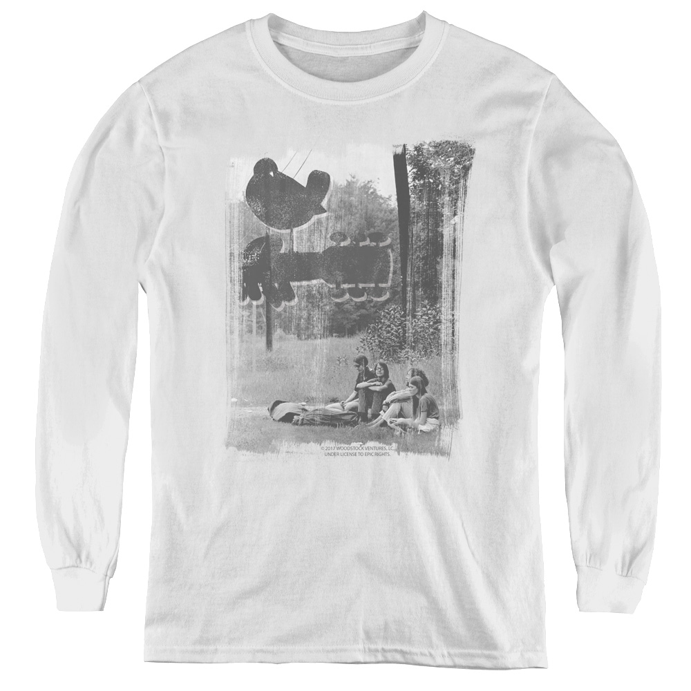 Trevco WOOD126-YL-3 Woodstock & Hippies In A Field Youth Long Sleeve T-Shirt, White - Large