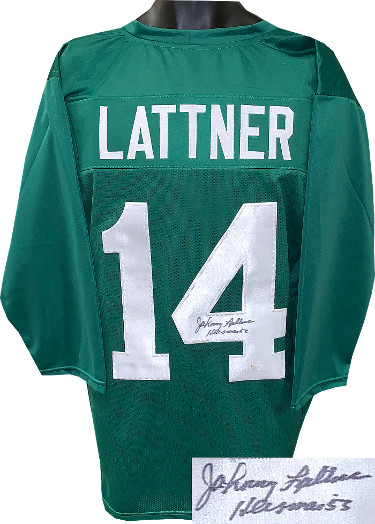 Athlon Sports CTBL-028825 Johnny Lattner Signed Notre Dame Green 0.75 Sleeves TB Custom Stitched College Football Jersey