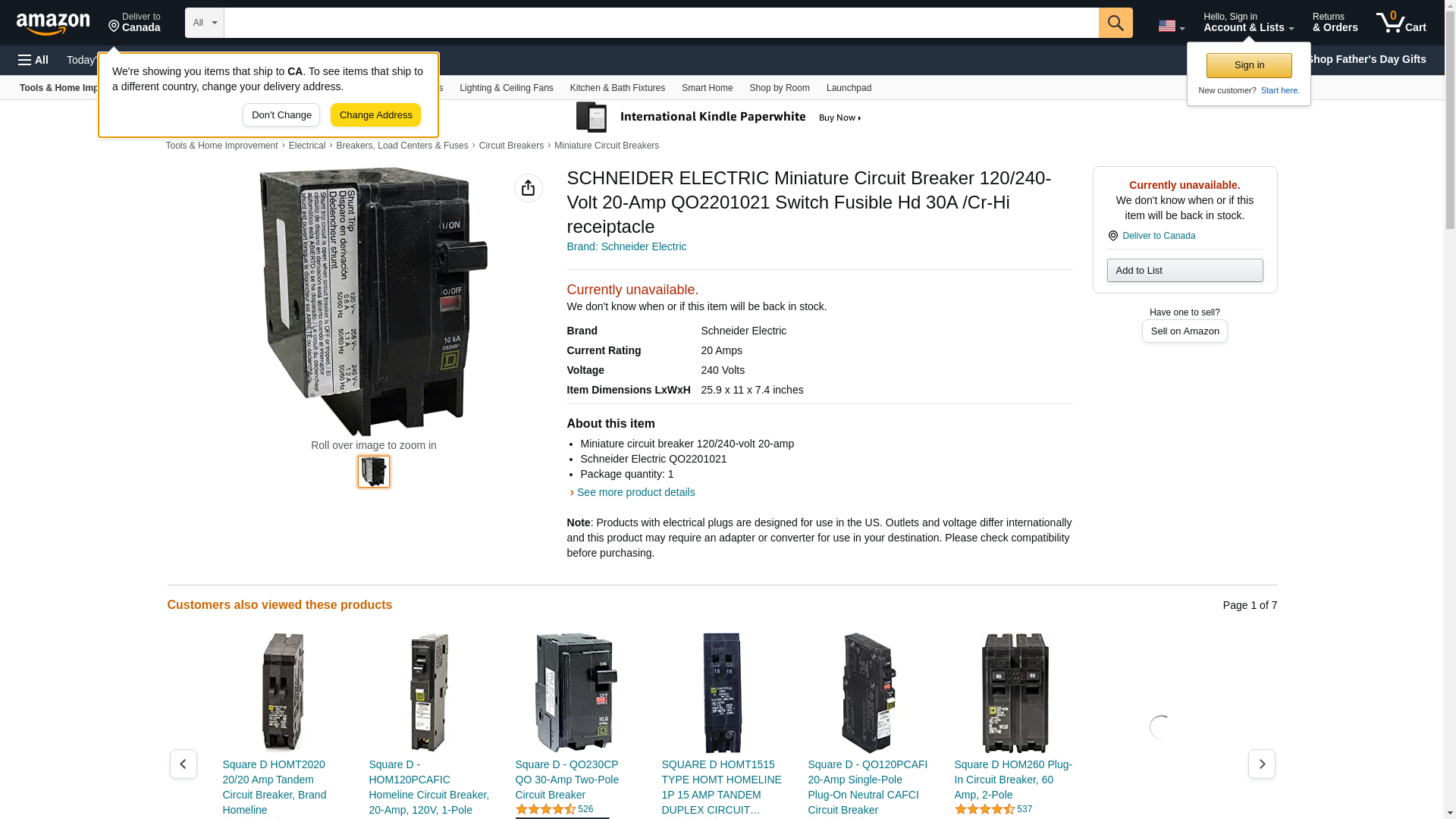 Square D By Schneider Electric Miniature Circuit Breaker 120/240V 20A - QO2201021