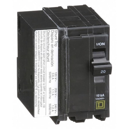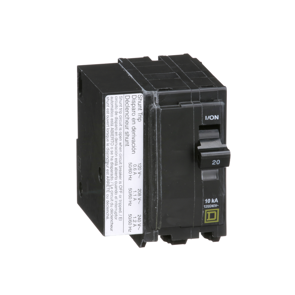 20A, 2P, 120/240V, QO Circuit Breaker, Plug-in with Visi-Trip Indicator, c/w Shunt Trip